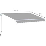 Awning For Patio - Manual Hand Crank 3 x 2m Aluminium Frame