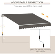 With a thick sun-shielding canopy fixed on an aluminium frame, this awning from Outsunny will give you all the shade you need this season. The manual design means you can set it up wherever needed - whether it's above a door or window, and it easily mounts onto your chosen surface with all accessories included in the package. Finished with a crank handle for easy operation. It's time to enjoy the beauty of the Summer more than ever before.