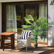 Bring beautiful greenery into your home, without the upkeep - pick this artificial palm plant, from Outsunny for a breath of life this season and beyond. Made from quality plastic for long life and crafted into an 18-leaf design, the indoor plant boasts a realistic colour and texture. The faux design means zero maintenance too, so the fake tree will keep looking the same even without any water. Finished with a cement-filled pot keep the potted outdoor plant stand proud where it stands.