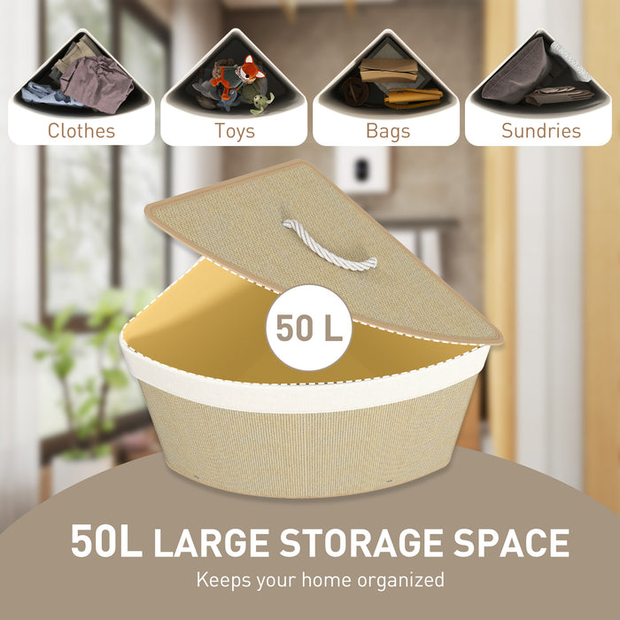 Bamboo Corner Laundry Basket With Lid 55L Removable Liner Bathroom Hamper