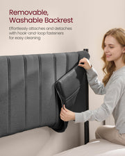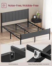 Bed Frame For King Size Bed With Grey Upholstered Headboard - Easy Assembly