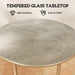 Beige 60cm Round Garden Side Table with Tempered Glass Top and Steel Frame