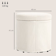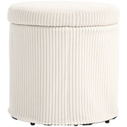 Beige 40cm Round Corduroy Storage Ottoman with Removable Lid and Legs for Living Room or Bedroom by HOMCOM