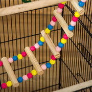 - Includes a swing, ladder, hanging toys, food and water bowls and perches