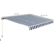 Manual Retractable Awning, 3.5 x 2.5 m, Blue/White