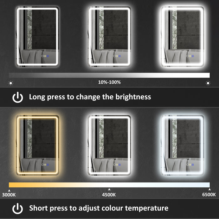 Bluetooth LED Bathroom Mirror Silver 50 x 70 cm with Anti-Fog and Touch Control