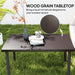 Brown Metal Garden Coffee Table with Woodgrain Top and Foot Pads for Outdoor Use