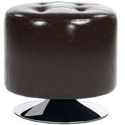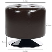 Round Swivel Footstool with Thick Padding and Steel Base Brown Faux Leather by HOMCOM