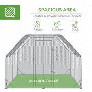 - Metal chicken coop: 3.8 metres in length, there is lots of room for small pets to roam around. Perfect for 10-12 chickens, it's also suitable for rabbits, ducks and more.