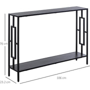 Bring a beautiful finishing touch to your home with this console table from HOMCOM. Made from metal for a supportive core structure, it's crafted with a unique and art-deco inspired pattern on the side: sure to catch attention instantly. Two particle board shelves on the top and bottom give lots of holding room, both covered in melamine for a smooth finish - ideal for busy and hectic lifestyles. A unique take on a traditional furniture staple.
