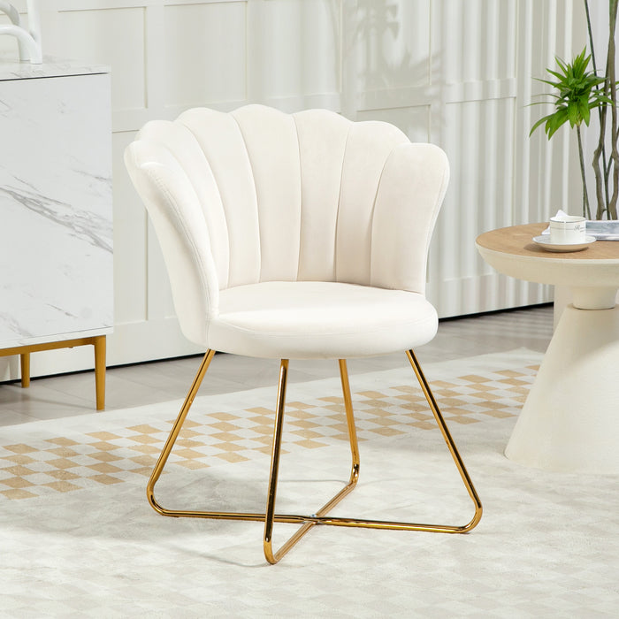 Cream Velvet Lotus Petal Accent Chair with Gold Legs Plush Upholstery and Stylish Design