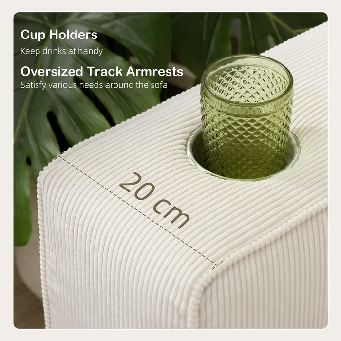 Transform your living space into a haven of comfort with the HOMCOM 3 Seater Sofa in elegant cream white. Designed to offer unbeatable relaxation and support, this corduroy upholstered sofa is both stylish and practical – a perfect fit for any living room, home office, guest room, or bedroom.