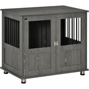 - SOLID STRUCTURE: Steel and particleboard with a wood-like finish make this wooden dog kennel durable and stylish. Since it has a rustic aesthetic, you can easily combine it with your other home decor.