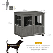 - DOG CRATE TABLE INFORMATION: Overall Dimensions: 85 W x 55 D x 75 H. Door Dimensions: 39 W x 65H. Suitable for small and medium dogs up to 15 kg in weight and within 65 cm in length. Weight Capacity of Top: 50 kg.