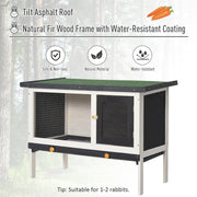 - STURDY & WEATHER RESISTANT: Constructed of solid fir wood frame, this rabbit cage is stable and durable. Coated with non-toxic water-based paint and tilt asphalt roof included to against the weather elements.