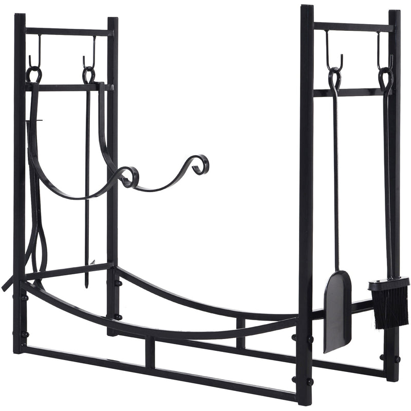 Log Holder For Fireplace, 4-PC Fireplace Tools, Metal