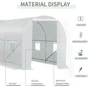 Looking for a year-round gardening solution? Look no further than the Outsunny 4.5 x 2 x 2m garden polytunnel greenhouse. This sturdy, rust-resistant steel frame greenhouse is perfect for growing tropical plants, vegetables, fruits, and flowers. The transparent cover allows for nourishing sunlight to pass through, while the roll-up door and windows provide ventilation. Assembly is required, but it's worth it for the large space and easy entrance. Extend your growing season today!