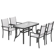 This 5-piece outdoor dining set is designed for anyone who wants to enjoy more time outside with friends or family. It helps you create a comfortable spot for meals, chats, or simply unwinding in your garden or on your patio.