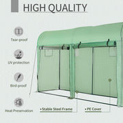 Get ready for year-round gardening with Outsunny's 10ft x 3ft greenhouse. Made of a sturdy steel frame and a large overhead cover, it protects your plants from harsh weather and allows the sun to shine through. With four windows and two roll-up doors, it's easy to regulate the temperature inside. The cover is made of thick plastic that shields your crops from mild wind, light rain and harsh sunlight. Ideal for gardens, allotments and other private outdoor spaces, this greenhouse is perfect for any kind of weather.