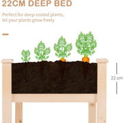 Giving your beloved flowers and plants their own spot to grow and nurture with this raised planter bed from Outsunny. Made from fir wood in a natural finish to blend in seamlessly with its surroundings, its design features a large 80 x 40cm open planter, giving you full control to plant a design which shows off your unique gardening style, with an inner cloth bag for easy and quick cleaning. Raised in design to stop any dirt touching the main unit, as well as reducing stress on the back and knees, it is finished with water-resistant paint all over to ensure it can be used outdoors all year-round. The key to falling in love with your garden all over again.