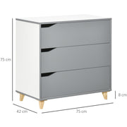 Style and organisation come together - this HOMCOM freestanding dresser. Comes with three drawers to keep clothing folded and organised. Made from particle board and MDF blend, the body is durable, with solid wood legs for full support. Side indent handles to open/close each drawer easily. A simple and spacious way to keep the home tidy.