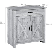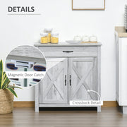 Style your home with this farmhouse-designed sideboard from HOMCOM. Its beautiful grey design will match your décor, whilst the spacious cabinet and drawer will keep kitchenware and other utensils tidy. The shelves are convenient, you can adjust the height to fit different sized items. A particle board-crafted structure is durable, reliable for everyday use and can be fixed to the wall for a solid foundation. The MDF material is easy to clean, maintaining that new look.