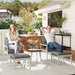 Built with weather-resistant PE rattan and a rustproof steel frame, this stylish set is made to last through every season. Featuring two comfy chairs, two multifunctional footstools, and a sleek acacia wood coffee table, this is more than just furniture – it's where memories are made.