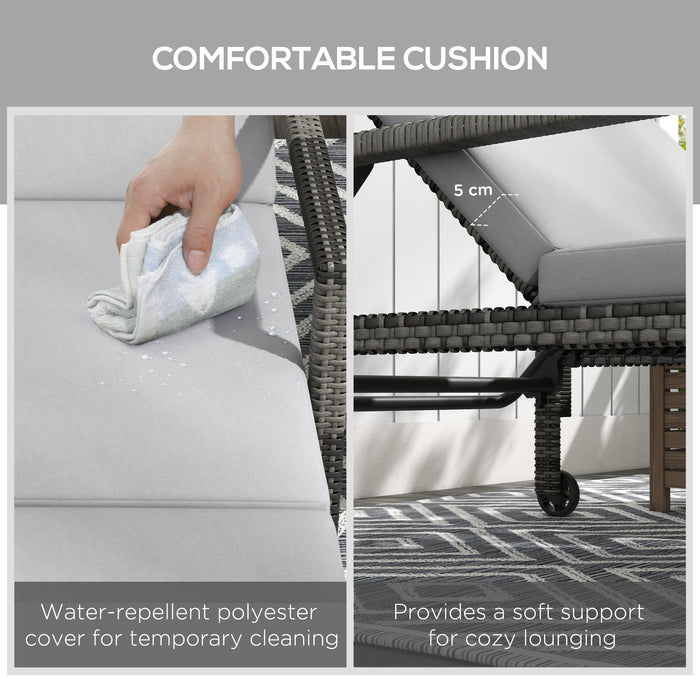 Outsunny Set of 2 Rattan Sun Loungers with Cushions and Wheels – Grey