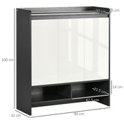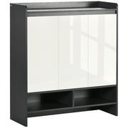 HOMCOM High Gloss Shoe Cabinet with White Doors and Open Shelves, Hallway Shoe Cupboard Storage Organizer for 24 Pairs of Shoes, Grey