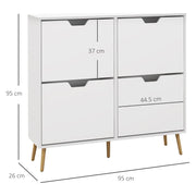 The HOMCOM Modern Scandi Shoe Storage Cabinet offers an elegant, space-saving solution to organize and protect your footwear collection. It blends functionality with style, making it a must-have for anyone looking to enhance their home's organization and aesthetic appeal. Add to cart now and transform your entryway!
