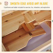 The natural wood PawHut cage is a fully furnished hamster home. With the modern design and high-quality fir wood, it is a perfect home for hamsters to play and exercise. Hamsters may look like to sleep the whole day; however, they actually do love to explore and climb. This extra tall, large wooden hamster cage acts as a great climb frame. The first and second tires are connected as a large exercise area with some small levels and ladders for exploring and climbing.
