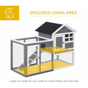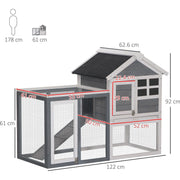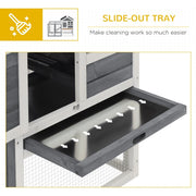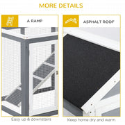 PawHut's two-story indoor/outdoor cage is perfect for small animals like rabbits and guinea pigs. Made from fir wood and coated with water-based paint, it's protected against mild weathering. A steel wire run offers fresh air with no escape risk, accessed by a ramp. Easy-open doors and a pull-out tray make it easy to clean and upkeep. Asphalt on the roof adds extra protection.