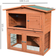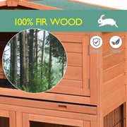 Create a comfortable and safe place for your small animal(s) with this rabbit hutch indoor from PawHut. It's formed into two levels, giving your pet plenty of room to move around, with the three doors providing easy access inside to clean and tidy up. Made from solid fir wood, the structure is made to last and keep your pets safe, with a top paint coat for extra protection. The inner connecting-level ramp allows animals to move up and down safely; the top level is fitted with a removable divider so you can create two upper rooms if needed. The slanted roof helps prevent water build up, with a layer of covering for extra protection. It's finished with wire mesh on the bottom to keep them safely enclosed whilst outdoors. Suitable for rabbits, guinea pigs, gerbils and other similar small animals.