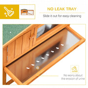 This outdoor rabbit cage from PawHut is perfect for use with rabbits, guinea pigs, and other similar small-sized animals. This deluxe wooden rabbit hutch is an ideal mix of safety and freedom and offers all the comforts of home, offering wide space to run and play. Constructed of solid and painted fir wood, perfect for outdoor use. Slide-out trays provide easy cleaning and other routine tasks. Lockable doors and openable roof for easy access.