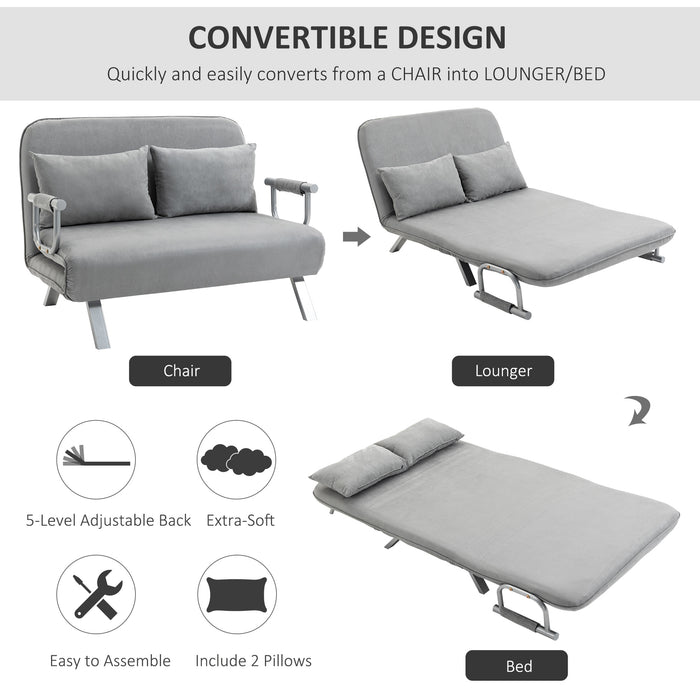 Light Grey Two Seater Click Clack Sofa Bed with Padded Cushions by HOMCOM