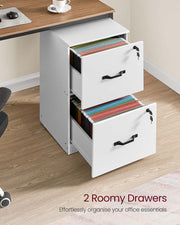 Lockable File Cabinet For Home Office - 2 Drawers With Adjustable A4 Hanging Rails - White
