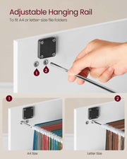 - Adjustable Hanging Rails: Customise drawer space to fit A4 or letter-size files with ease