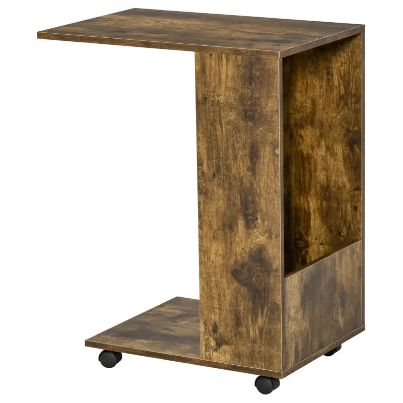C Shape Mobile Sofa Side Table with Storage, Casters