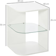- DIMENSIONS: 56H x 40W x 40Dcm. Top and bottom shelf: 40L x 40Wcm. Glass shelf: 38.1L x 38.1Wcm.