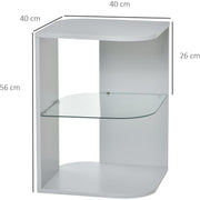 Curved, simple sophistication for the home and office starts here. This corner table, from HOMCOM is a perfect way to update your space whilst keeping it tidy. Made from particle board for durability, it's fitted with a middle glass shelf for three storage levels. Corner design means it can fit in even those awkward spaces. How about using it for a nightstand? Your modern home starts here.