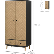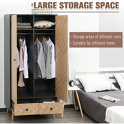 - SPACIOUS STORAGE: This wardrobe has a large cabinet divided into 4 areas by the fixed panels, with two hanging rods inside for hanging cloths and two storage shelves for your pillows or blankets. And equips with two drawers to store clothes, accessories and more. An ideal addition to your home or apartment.