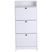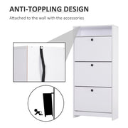 Elevate your hallway with HOMCOM's Narrow Shoe Cabinet, designed for elegance and functionality. This slim cabinet with 3 spacious drawers and an upper shelf offers a perfect solution for shoe storage in compact spaces. Made from robust 16 mm-thick chipboard, it promises sturdiness and durability. The chic handles and modern design add an elegant touch to your home decor. Safety is enhanced with anti-dump parts for wall mounting.