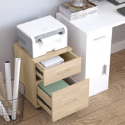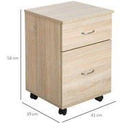Keep your important paperwork and office supplies well organized with this HOMCOM rolling storage organizer. This rolling cart with 2 drawers offers ample storage space for your different items. There are 4 omnidirectional wheels, 2 have brakes for easy movement. Made of durable particle board, the mobile filing cabinet will not break or crack easily. The minimalist style goes well with contemporary or modern home and office decor. Just buy our file cabinet to fill your home and office space!