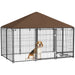 Outdoor Dog Kennel with Canopy and Rotating Bowl Puppy Playpen Enclosure by PawHut