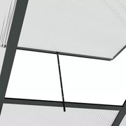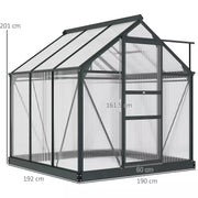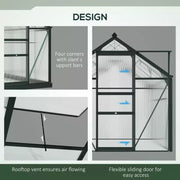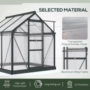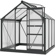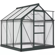 Create the perfect growing environment for your garden plants with this Outsunny 6x6ft Greenhouse. The clear polycarbonate panels let in maximum light while keeping out harmful UV rays, promoting healthy plant growth. The walk-in design with a slide door and push-open window provides easy access and ventilation. The powder-coated aluminium frame and included ground stakes provide a sturdy structure that can withstand various weather conditions. With a lift-up roof that stays in place, it's easy to regulate temperature and humidity. Start growing your dream garden today with this versatile and practical greenhouse!