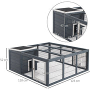 - PRODUCT INFORMATION: Overall dimension: 123L x 120W x 52H cm; Main House dimension: 42.5L x 42.5W x 47H cm; Suitable for about 2 rabbits.