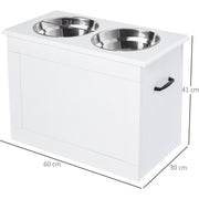 This PawHut elevated feeder makes meal times easier and more comfortable for your pet. The base is made from MDF for a structure which is tough and can cope with everyday wear and knocks when being used. It comes with two bowls - one for feeding, and one for water; both of which are made from stainless steel for hygiene and durability. Both can be removed for easy cleaning. There's also storage space which is accessed by lifting the top up - perfect for keeping food conveniently stored. Suitable for larger and older dogs who are unable to bend down to the floor.