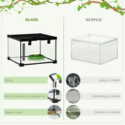 Do you want to give your pets a realistic wild heaven? Our Pawhut reptile box is your best choice. You can create land and water, rainforest habitat by yourself. Includes with a leaf-shaped water basin and a strip patch thermometer, it is an ideal habitat for reptile animals. The pull-out top cover includes a feeding port for easy feeding. Offering the best viewing for you and your animal, a popular micro landscape in a small-scale reptile terrarium, are hygienic and easy to clean.