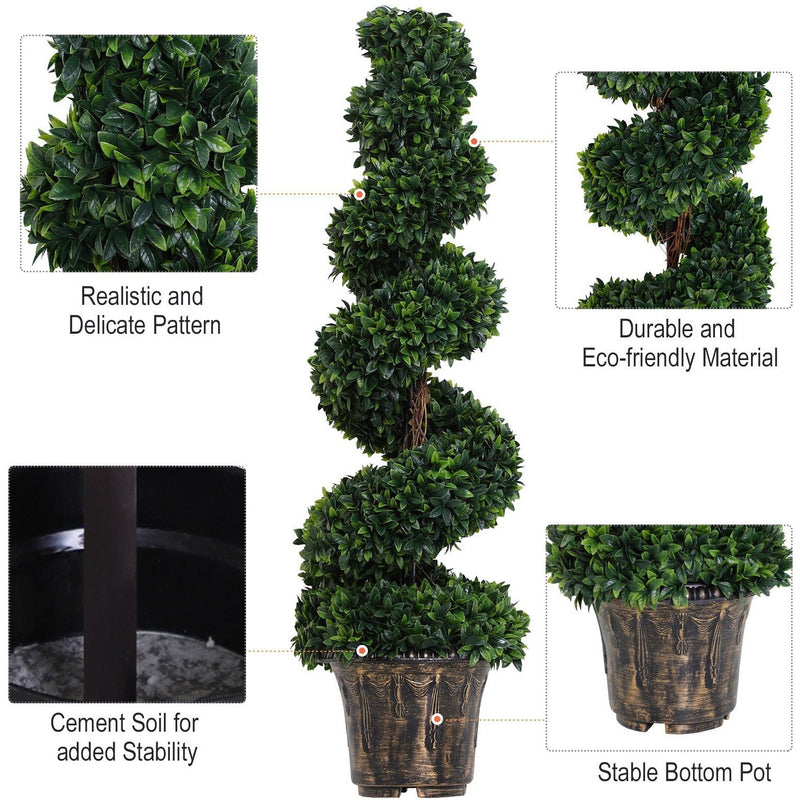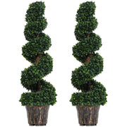 Set of 2 Artificial Boxwood Spiral Topiaries, Indoor/Outdoor