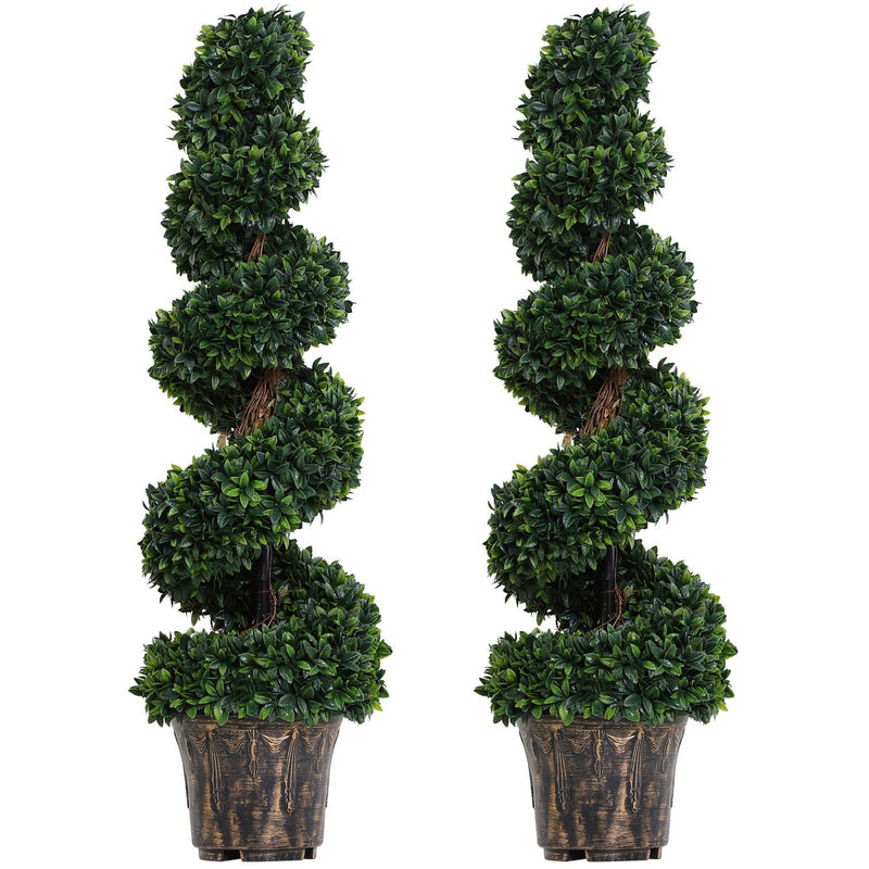 Bring a distinctive and lively energy to any space with this set of two artificial trees from Outsunny. The potted plants boast an eye-catching spiral design and come pre-assembled so you can start enjoying their décor right away. Each container is filled with cement to ensure the spirals remain standing and features a sophisticated bronze finish. Bring colour and greenery to your home with no hassle or upkeep.